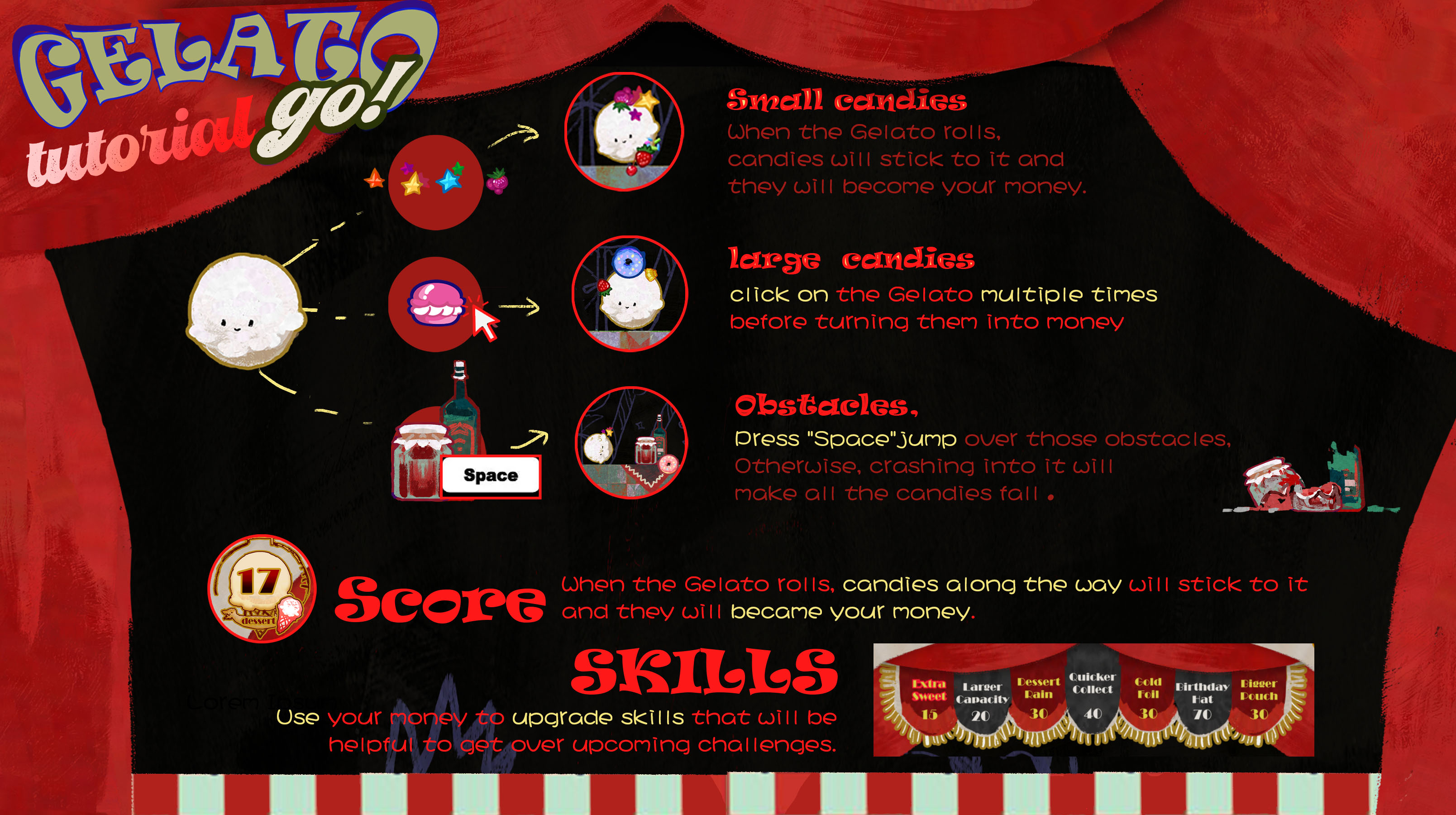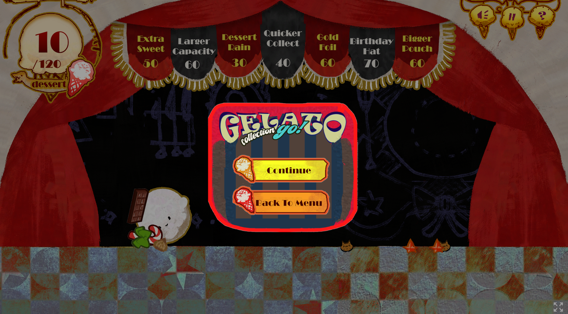 Control the gelato to roll and collect candies along the way!